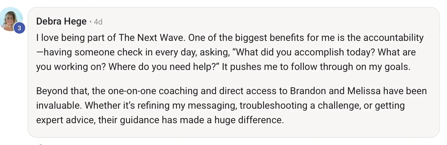 Now, we’re bringing that experience and momentum to Next Wave, and we’re all in. This is more than a program—it’s a movement. And we’re committed to mentoring you step by step so you can create real success in the online space.