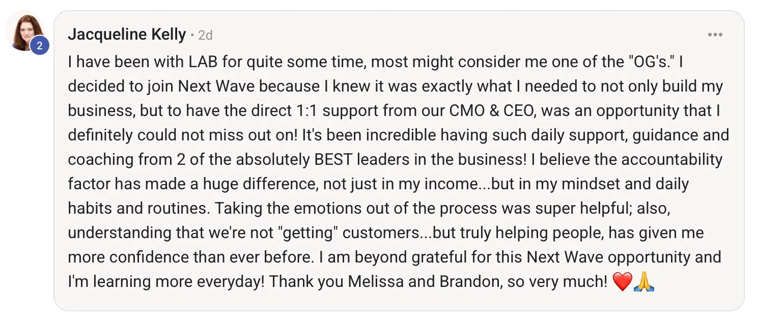 Next Wave is a mentorship program inside of Life Activated Brands.